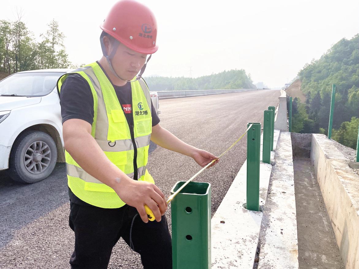 榮譽對李袁杰來說是肯定,更是前進的動力。2022年8月,他被調至貴州貴金高速交安項目,擔任技術負責人一職。從熱鬧繁華的城市到條件艱苦的小鎮,從項目計量員到工程技術部技術負責人,對李袁杰來說,這是挑戰,更是難得的鍛煉與學習機會!面對繁重陌生的工作任務,李袁杰堅持以勤補拙。白天,他頂著烈日奔波在施工現場,與工人同進退,嚴格把握現場施工質量,護欄的橫梁中心高度、隔離柵的基礎尺寸、標志板面的凈空高度、標志基礎的澆筑工藝等,各種技術指標他都認真把關。晚上,他一頭扎進辦公室鉆研圖紙與規范,與同事探討現場發生的各類問題,合理安排施工計劃及施工部署,確保項目建設有條不紊地進行。因為深知肩上責任之重,所以,工作中的李袁杰總是格外的積極刻苦。