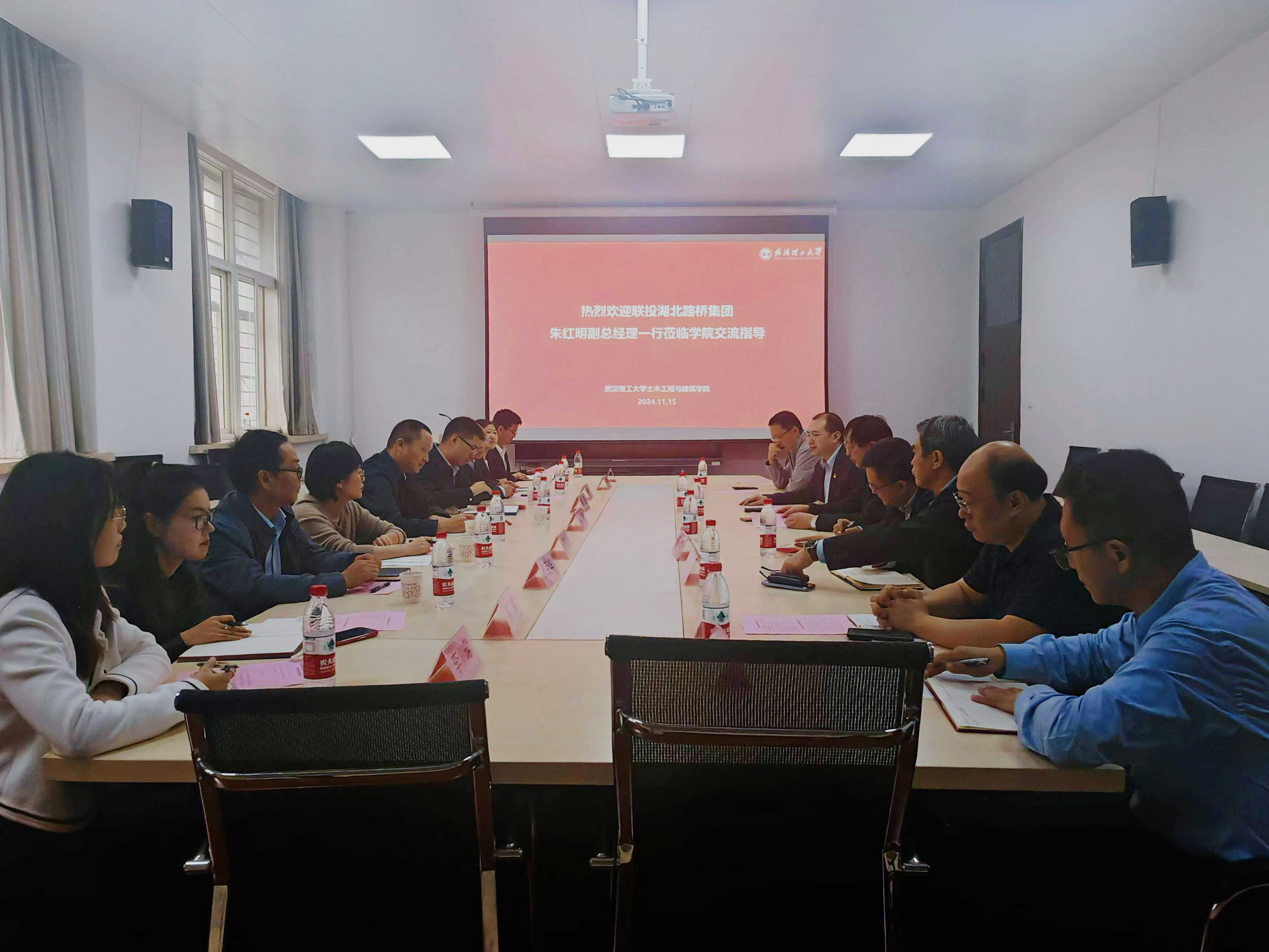 吳斌對(duì)湖北路橋一行的到來表示熱烈歡迎,并簡(jiǎn)要介紹了土建學(xué)院發(fā)展歷史、學(xué)科建設(shè)、人才培養(yǎng)、科技創(chuàng)新等最新情況。他表示,近年來,學(xué)院在持續(xù)拓展科技成果轉(zhuǎn)化的新渠道、新途徑,湖北路橋作為省內(nèi)工程建設(shè)領(lǐng)域重點(diǎn)企業(yè),始終秉持開放合作的理念,積極與各高校建立“產(chǎn)學(xué)研”實(shí)踐基地。2018年,湖北路橋與武漢理工大學(xué)成功建立了“聯(lián)合人才培養(yǎng)實(shí)踐基地”,這一成果為雙方深化合作打下了堅(jiān)實(shí)的基礎(chǔ),當(dāng)前雙方共建“博士后創(chuàng)新實(shí)踐基地”和“卓越工程師”校企聯(lián)合培養(yǎng)項(xiàng)目,不僅是順勢(shì)而為,更是對(duì)既有合作模式的深化與升級(jí),雙方要攜手促進(jìn)學(xué)術(shù)研究與產(chǎn)業(yè)實(shí)踐的深度融合與協(xié)同發(fā)展,不斷推動(dòng)行業(yè)技術(shù)進(jìn)步和產(chǎn)業(yè)升級(jí),實(shí)現(xiàn)互利共贏的新局面。