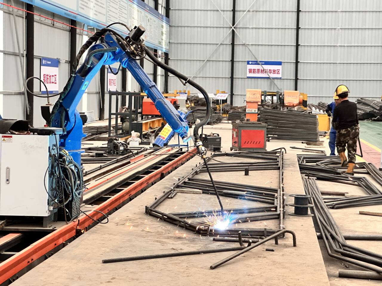 項(xiàng)目大力推行“智能制造”,鋼筋加工由自動(dòng)彎箍機(jī)、滾焊機(jī)、焊接機(jī)器人等智能工裝精準(zhǔn)完成,同時(shí)著力打造智慧拌合站與數(shù)智梁場(chǎng)。混凝土拌和在全流程監(jiān)控下實(shí)現(xiàn)質(zhì)量閉環(huán),每一片預(yù)制梁從澆筑到養(yǎng)護(hù)的生產(chǎn)數(shù)據(jù)流均被物聯(lián)網(wǎng)自動(dòng)采集綁定,為每個(gè)構(gòu)件賦予唯一的“數(shù)字基因”,使質(zhì)量追溯貫穿全生命周期,實(shí)現(xiàn)從“工廠制造”向“數(shù)字智造”的深度轉(zhuǎn)型。